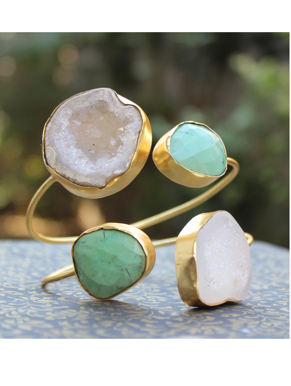 NIKEL FREE GOLD PLAETED SEMI PRECIOUS STONE SEATED EARRING